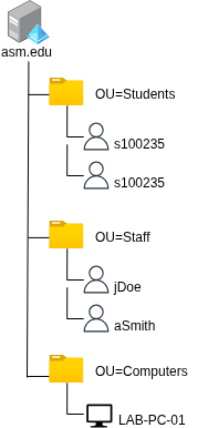 - Manages enterprises-wide data (users, computers, groups, printers) from a central repository